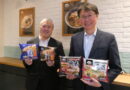 まずは玄関、ニチレイフーズの炒飯の妖精「イタメくん」がいます。大人目線だとこんな感じですが、小学生の視点で見たら引きつけられることでしょう。全体が布製でふんわりムード。頭の上の炒飯の部分はなかなかの力作と感じました。記念撮影に入っていただいたのは、ニチレイフーズ竹永雅彦社長㊧、キューレイ平賀忠之社長㊥、イタメくんです。