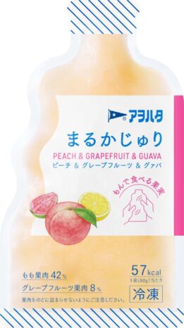 冷凍食品部門の第1位は、アヲハタの「まるかじゅり ピーチ&グラープフルーツ&グァバ」でした。チューブ式飲料感覚で楽しめるフルーツです。