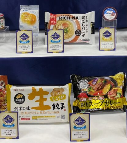トレンド賞の表彰では、冷凍食品の中から1品、日清食品冷凍「冷凍 完全メシ 羽根つき肉餃子」が入賞しました。33種の栄養素をバランスよく、というコンセプトの『完全メシ』シリーズは、昨年もお好み焼でトレンド賞を獲得しています。「コスパ、タイパに加えて、ウェルパ、ウェルネスパフォーマンスのある商品をおいしく」(同社三島健悟マーケティング部長)と提供するシリーズが、消費者からトレンド商品と評価されています。