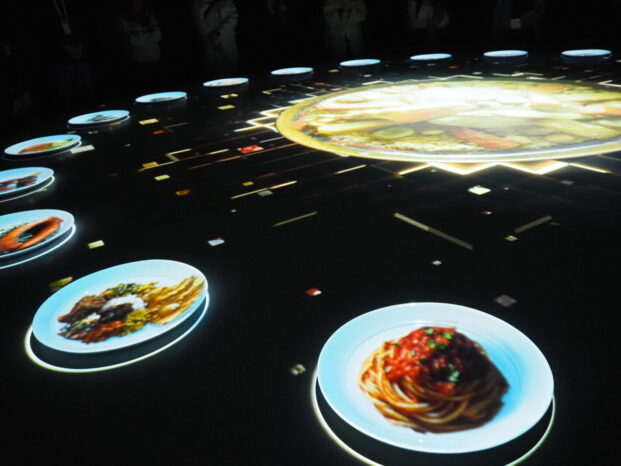 最後は来館単位の35人が大きな丸いテーブルに集い、「一緒に食べる」バーチャルな体験。