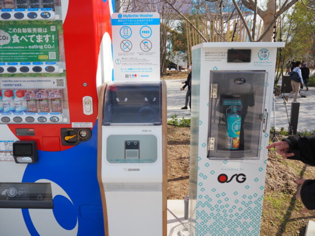 飲料自販機の隣に設置された無用給水所には驚きました。1回給水するたびに、ペットボトル1ッ本の削減をカウントします。お水はとてもおいしかったです。水の供給が十分でない国々の方々も、さぞかし驚くことでしょう。