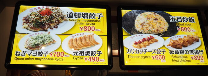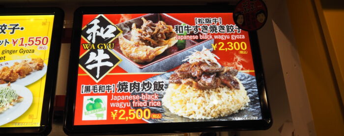 事前に開かれたプレス発表会では、大阪王将は、サステナブル飼料で育てたウメビーフをトッピングした炒飯(ロボット調理)を紹介しましたが、もちろん餃子もあります。