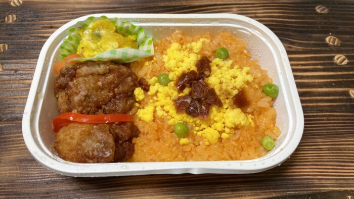 「チキン弁当」は、トマト風味のライスとジューシーな鶏の唐揚げのコンボが鬼ウマ!