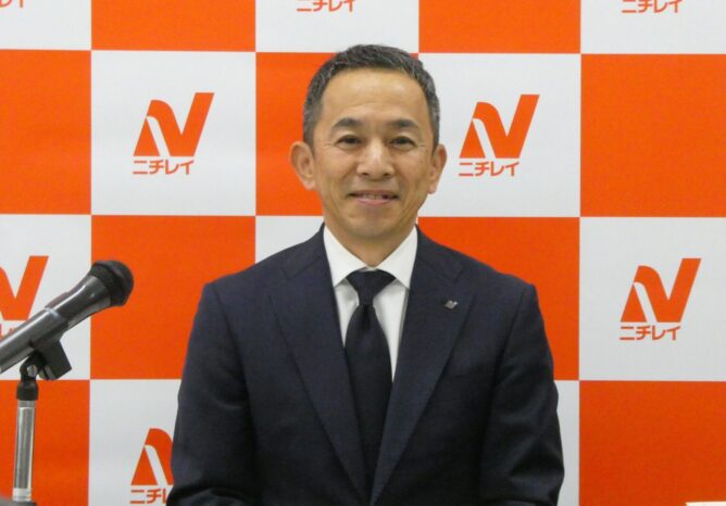 ニチレイは5月13日、本社PRルームで2025年3月期通期決算発表会見を開催、同席上、10年後の営業利益率10%、海外売上高比率40%などを掲げた新たな長期経営目標「N-FIT(Nichirei Future Innovative Tactics:エヌ・フィット)2035」並びに、3か年の新中期経営計画「Compass × Growth(コンパス・バイ・グロウス)2027」を発表しました。