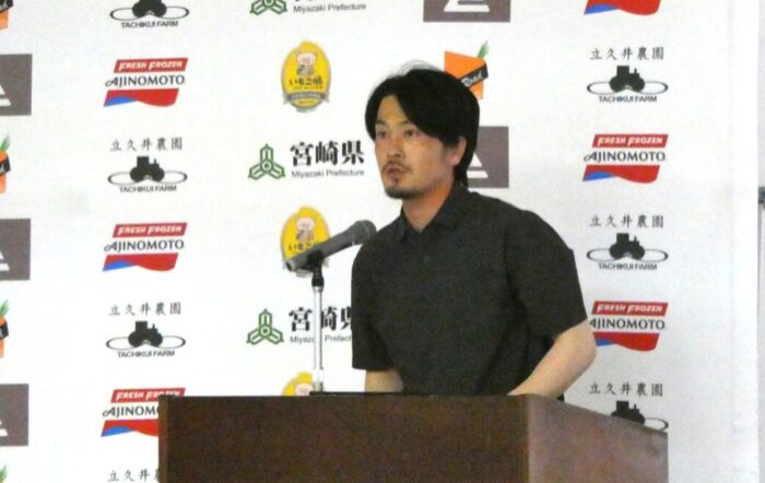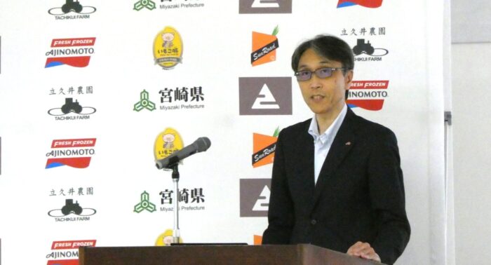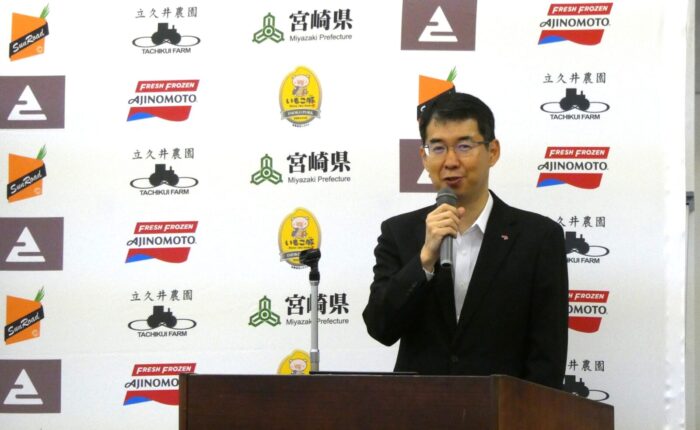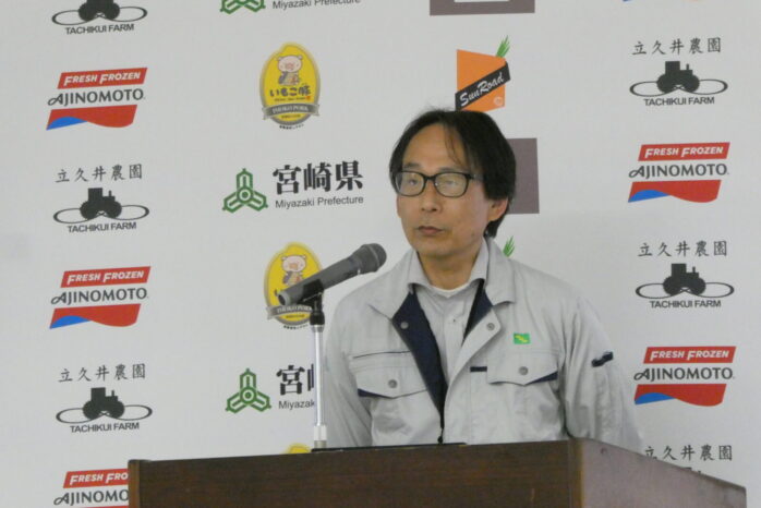 小岩﨑次長は、宮崎県「耕畜連携」産地支援の概要を紹介し、味の素冷凍食品の取り組みについて「大変注目しています」としました。
