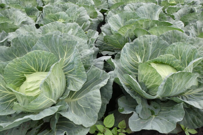 立久井課長は、かなり大きく育ったキャベツを刈り取り、「レクストの完熟堆肥は非常に質が高い。すぐ肥料として役立ちます」と説明しました。大きく、虫くいもなくきれいに育ち、それによって収穫のスピードが上がることも、完熟堆肥の効果、とのことでした。