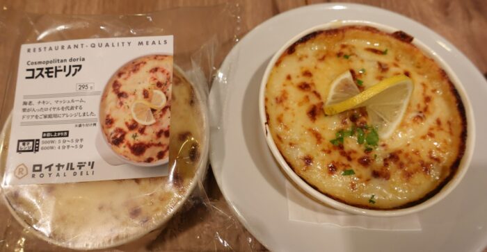 少し前の写真で恐縮ですが、「ロイヤルデリ コスモドリア」(295g、730円税込)は、このような感じです。