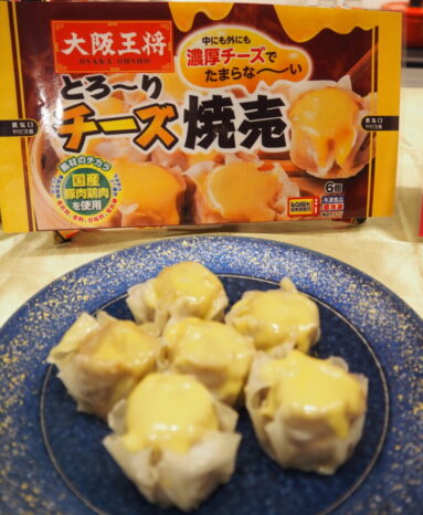 「とろ~りチーズ焼売」(180g=6個)は、1個30gの大きめ焼売に、自家製の濃厚チーズソースがとろ~りとかかった、見た目も大胆な焼売です。チーズソースはモッツァレラベースで、関東工場で炊き上げています。さらに餡にも3種類のチーズ(モッツァレラ、ゴーダ、ステッペン)を使用しています。