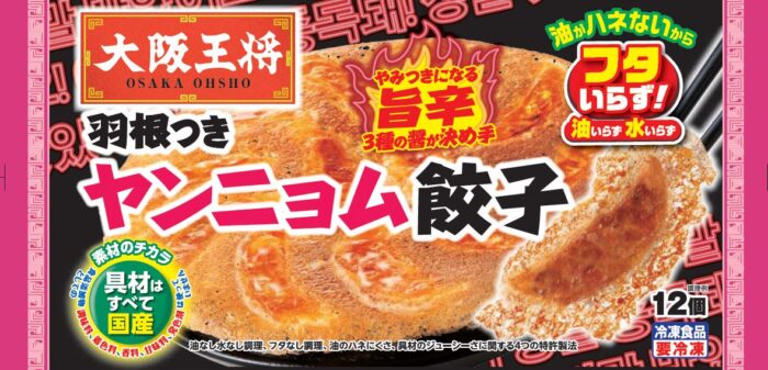 餃子新商品は、トレンドの韓国系フレーバー「羽根つきヤンニョム餃子」(292g=12個)です。