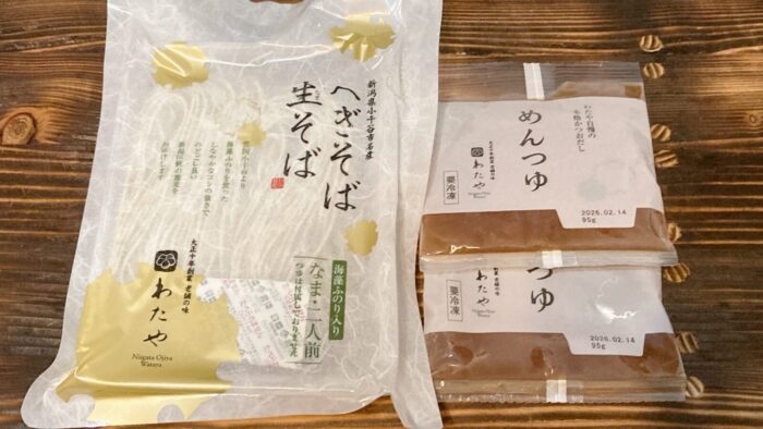 もちろん乾麺もあんだけどよ、「へぎそばは生じゃなきゃダメだろ!」って、客からの熱い要望に応えて、「わたや」が長年の経験と技術をぶち込んで開発した商品ってわけ。