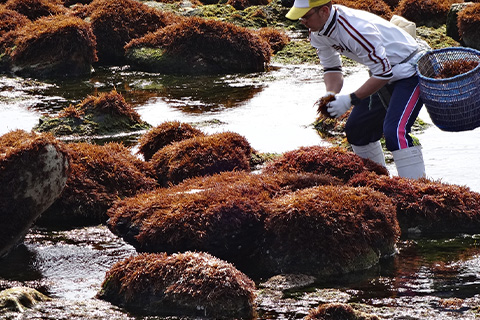 昔、魚沼地方は織物産業が盛んで、織物の糸を張る時に布海苔がノリとして使われてたんだとよ。