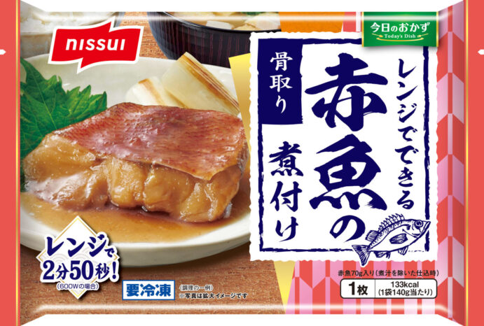 ニッスイは、2025年秋冬家庭用冷凍食品新商品のイチオシ商品として、「今日のおかず レンジでできる 赤魚の煮付け」(1枚:140g)と、「同 さばのみそ煮」(1枚:150g)を9月1日に発売します。