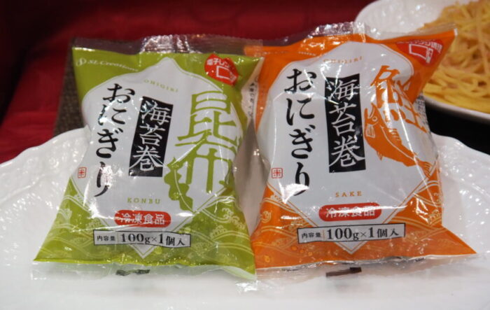 「海苔巻きおにぎりセット(昆布・鮭)」(各1個100g×2個、100円)、
