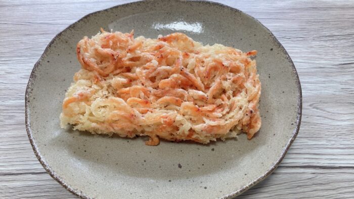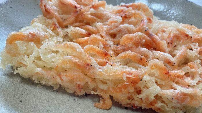 でもよ、水分量の多い玉ねぎとかの材料をあえて使わず、桜えびだけに特化することと、動画内にある匠の技で生み出された“衣の空間”によって、この食感を実現してんのよ。