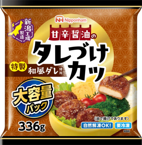 「タレづけカツ VP」(336g)は、甘辛醤油の特製和風だれが染み込んだタレづけカツ。ごはんが進みます。8月発売済。