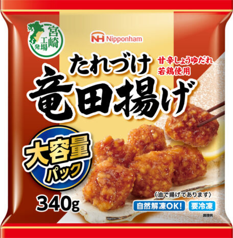 「たれづけ竜田揚げ VP」(340g)は、若鶏の竜田揚げに甘辛醤油だれをからめた商品。ごはんが進む味わい。8月発売済。
