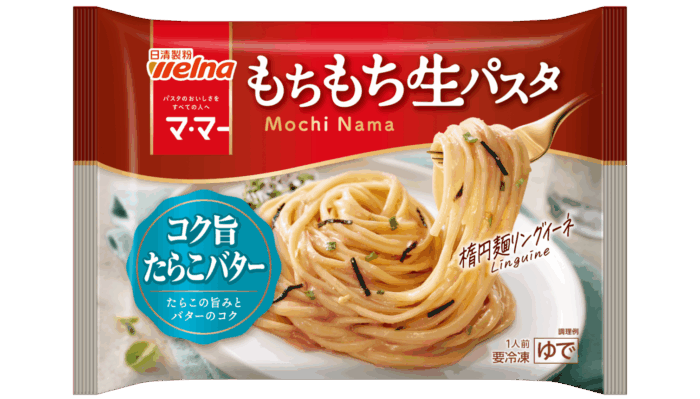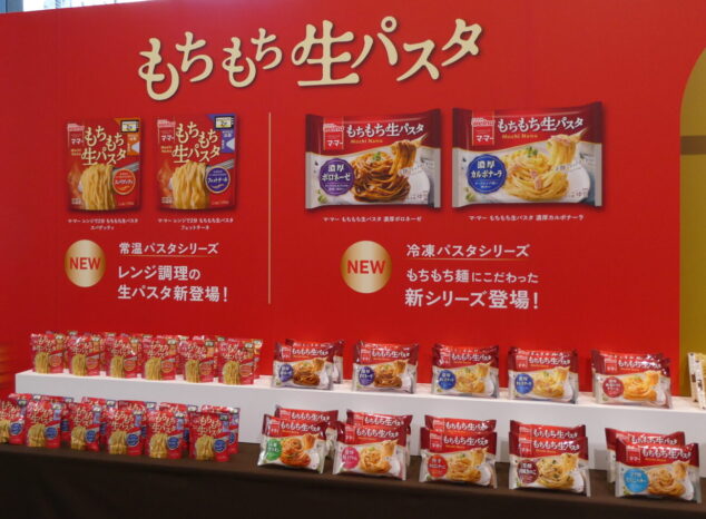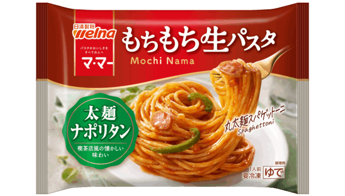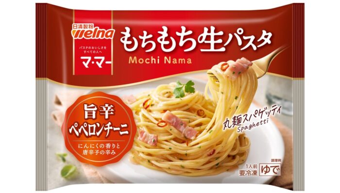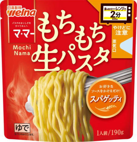 『もちもち生パスタ』ブランドでは、常温保存商品で、1食ずつ袋のままレンジ調理できる新感覚の生パスタ「マ・マー レンジで2分 もちもち生パスタ スパゲッティ」(190g)と「同 フェットチーネ」(190g)も新発売。