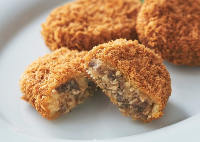 野菜の甘みを生かしたブイヨンや、ソテーした玉ねぎを合わせ、じゃがいもの風味を最大限に引き出した、ほんのり甘い味わいのコロッケです。
