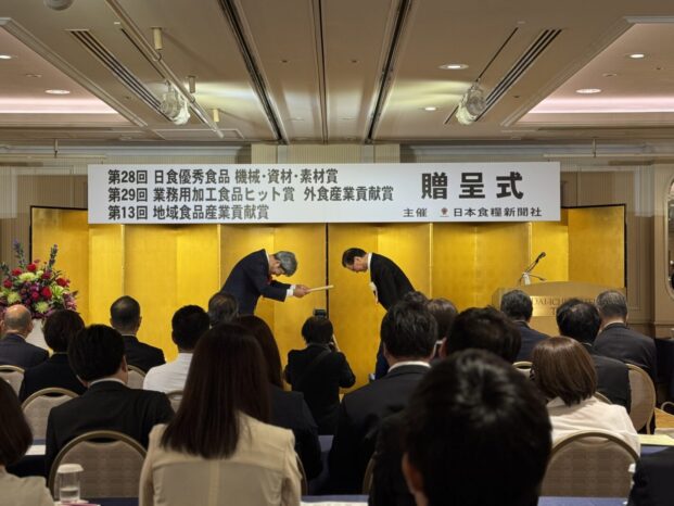 日本食糧新聞社制定、農林水産省後援「第29回業務用加工食品ヒット賞/外食産業貢献賞」、並びに「第28回日食優秀食品機械・資材・素材賞」、「第13回地域食品産業貢献賞」の表彰式が9月11日午後、東京・新橋の第一ホテル東京で開催されました。