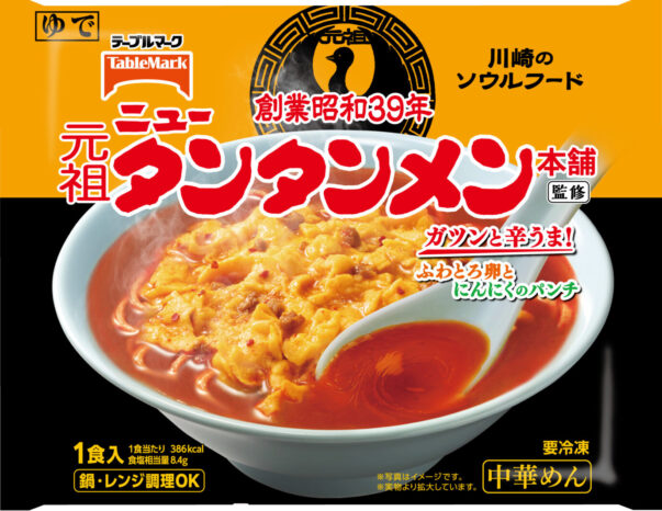 川崎のソウルフードといわれるニュータンタンメン。「元祖ニュータンタンメン本舗 監修 タンタンメン」は、刺激的な唐辛子×にんにくのパンチと豚・鶏ガラの旨みが効いた一杯。中太麺とふわとろ卵でお店の味を再現しています。