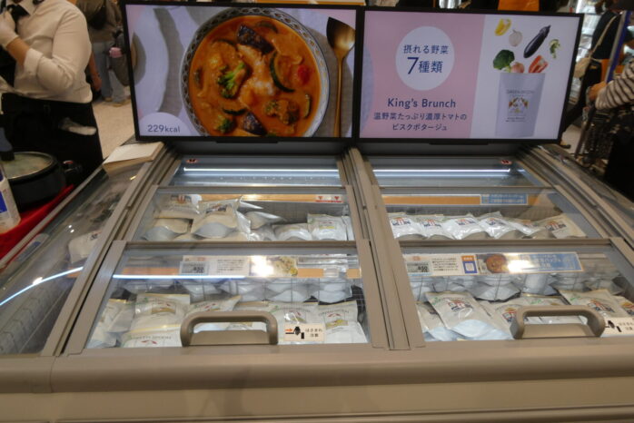 「関西初出店(四条畷)から1年、その当時から比べると600SKU(品)が入れ替わっています」(青木部長)と常に品揃えの見直しを進めている進化系の業態との説明。1号店(2022年8月)と比較すると、当初の取り扱い商品は「1~2割くらいしか残っていない」(同)そうです。店舗では、大型画面のデジタルサイネージを随所に取り入れているところが、当初とは大きく変わっている点とのこと。