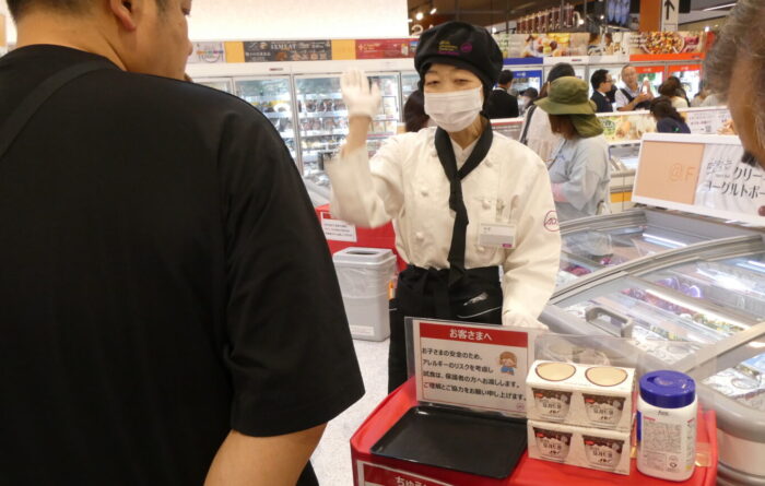 韓国スイーツ「クリーミーヨーグルトボール」の試食は大人気。