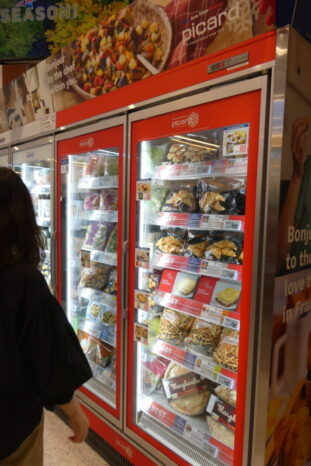 イオンリテールの冷凍食品専門店「@FROZEN(アットフローズン)」17店目、「イオンスタイル京都桂川@FROZEN 」のオープン初日(9月26日)、お昼近くの様子です。お買い物をされている方々に聞いてみたら、京都初と聞いたのでどんなお店か見に行こう、と初日から足を運んだ方が多かったようです。京都初出店。関西では3店目です。店内の「プティピカール イオンスタイル京都桂川店」(グループ企業・イオンサヴール運営)も京都初。関西では2店目です。ニュースなどで聞く、フランスの冷凍食品専門店、ピカール(Picard)。京都の皆さま待望の出店ではないでしょうか。