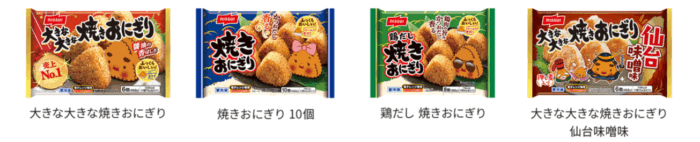 対象商品は、「大きな大きな焼きおにぎり」、「焼きおにぎり10個」、「鶏だし 焼きおにぎり」、「大きな大きな焼きおにぎり 仙台味噌味」(期間限定発売中)の4品です。