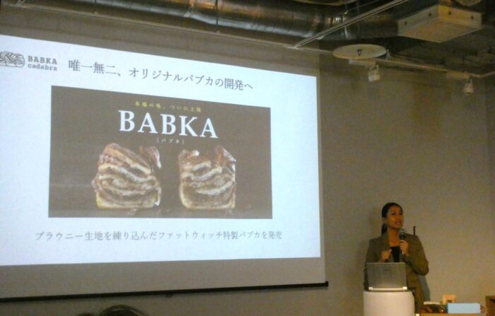 店舗オープンに先立ち東京で開催した記者発表会で、筏由加子社長は、ニューヨーク出張の際に初めてバブカを知ったのは、ファットウィッチの創業者パトリシアさんからだったと紹介。