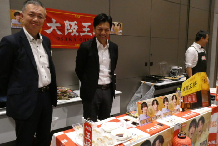 アイドルそろい踏み。イートアンドフーズは「大阪王将たれつき肉焼売」。渡辺翔太さん、深澤辰哉さんのパネル。