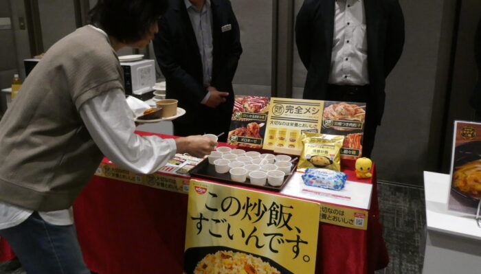 ご夫婦で来場してひときわ真剣に試食していらっしゃる方に聞いてみたら、「私、どうしても参加したくて50口応募したんですよ!」と熱い!! なぜそんなに来たかったんですか?「冷凍食品が好きでよく使っているんで、新しい商品を知りたいからです」とのお答え。そのファンぶりに感動しました。