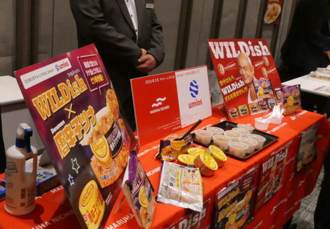 マルハニチロ「WILDish 唐辛子ツナ炒飯」。韓国の唐辛子ツナ缶、あばれるくんのCMパネルも展示