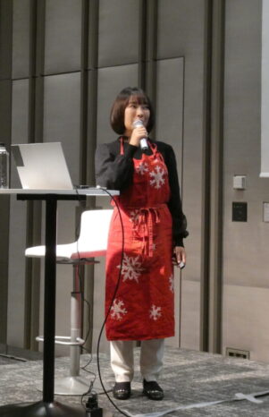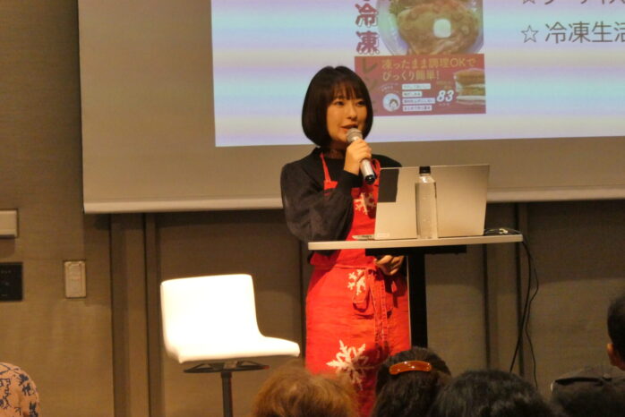 首都圏市販冷食連絡協議会が10月22日に開催した「冷凍食品試食会&トークショー」イベントで講演する、冷凍料理家&冷凍インフルエンサー、冷凍子ママです。