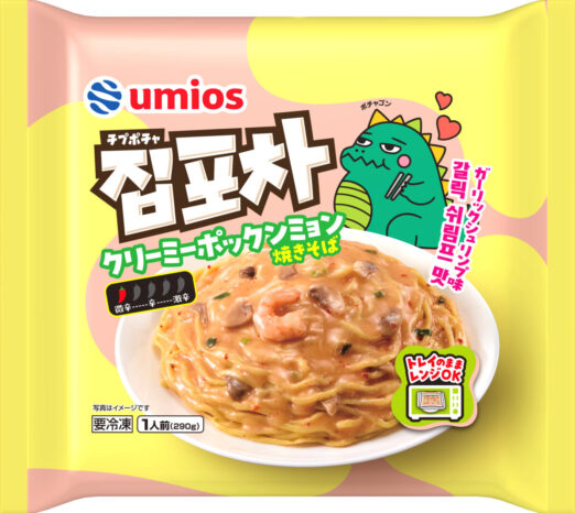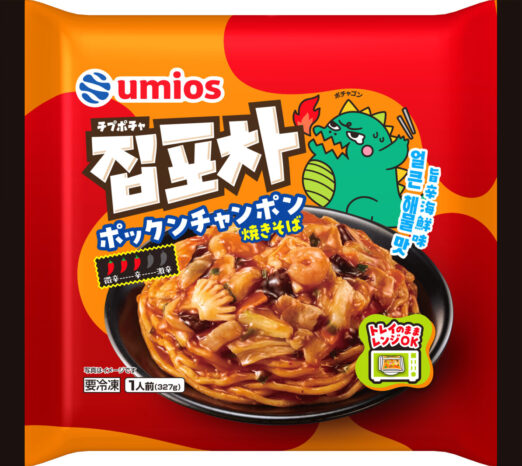 マルハニチロの2026年春季家庭用冷凍食品の中から、韓国の屋台メニューをイメージした新シリーズ『チプポチャ(おうち屋台)』の2品、「ポックンチャンポン」(327g)㊨と、「クリーミーポックンミョン」(290g)㊧を紹介します。3月発売なので、新社名Umios(ウミオス)のロゴを付けたパッケージです。なんだか新鮮で、異国ムードを感じますね。