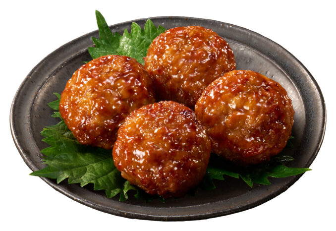 「至福のつくな レンコン入り」は、国産鶏肉を使用した食べ応えのあるつくね。焦がし醤油入りの照焼タレで焼き上げています。同社泉佐野工場で製造する初の串なしつくねです。卵の黄身を添えて食べたい外食店の味わい。