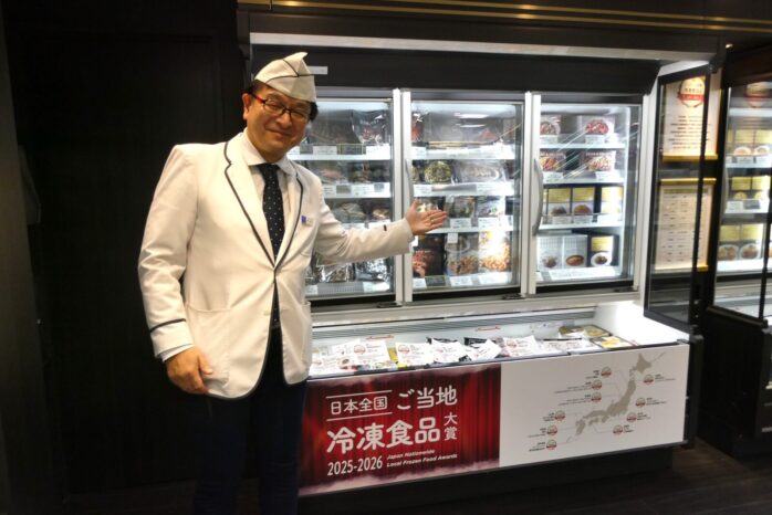 銀座松屋の地下2階「ギンザフローズングルメ」売場では、第2回「日本全国!ご当地冷凍食品大賞2025‐2026」(一般社団法人未来の食卓主催)の受賞商品から厳選10品を発売しています(2月14日まで)。にこやかに紹介していただいたのは、今井克俊課長です。