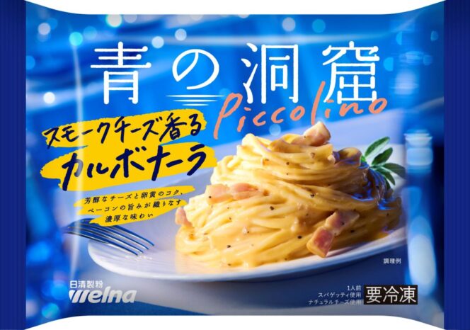 日清製粉ウェルナは、『青の洞窟』ブランド発売30周年を迎える今年、同ブランドのリブランディングを実施します。冷凍パスタでは、「青の洞窟 Piccolino(ピッコリーノ) お肉の旨みあふれるボロネーゼ」(280g)と「青の洞窟 Piccolino スモークチーズ香るカルボナーラ」(275g)の2品を3月2日に新発売します。従来の青色より明るめのブルーで軽やかなデザインのパッケージです。