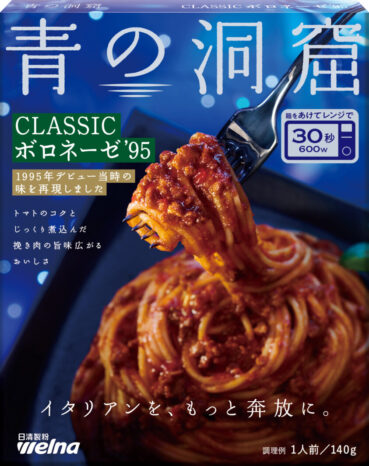 また、ブランドが誕生した1995年当時の味を再現した「青の洞窟CLASSICボロネーゼ’95」登場、カジュアルラインの「青の洞窟Piccolino」8品のリニューアル、常温販売の生パスタ3品(フェットチーネ、リングイーネ、タリオリーニ)発売と多彩なラインナップになります。