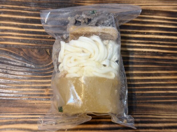 大澤屋秘伝の出汁が、麺と一緒に凍っている。
