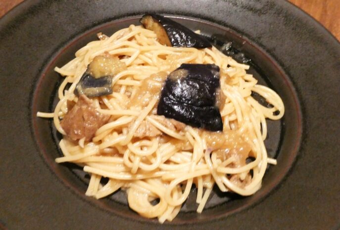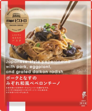 新商品はもう1品、「洋麵屋ピエトロ ポークとなすのみぞれ和風ペペロンチーノ」(285g)。