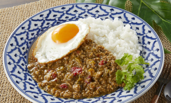 常温品ですが、タイ料理のごはんメニューガパオライスがすぐできる「ガパオの素」(1食:120g)も本格派。袋ごと電子レンジで温めて、温かいごはんにかけるだけの手軽さ。