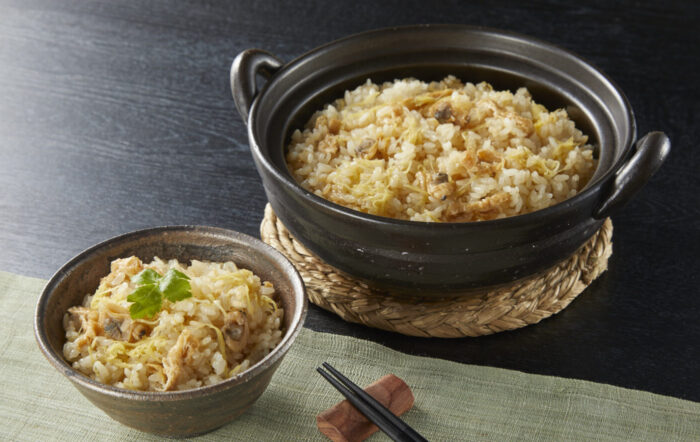 長崎グルメは、「島原百年生姜とあさりの炊き込みご飯の素」(135g:2合用)。香り高い島原百年生姜がたっぷり。繊維質が少なくやわらかい辛みが特長のしょうがです。100年以上栽培を続けている農家との出会いから開発された商品です。あさり、刻み揚げで風味良く仕上げた炊き込みごはんの素を冷凍でお届け。冷凍だからこそ、素材の味わいそのまま、です。