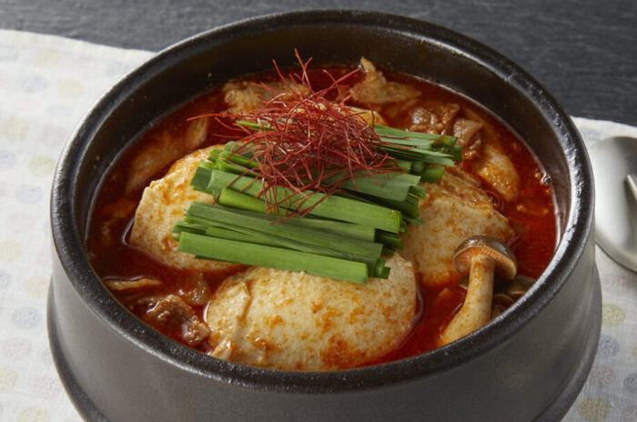 あさりと豚肉のおいしさがギュッと詰まったスンドゥブの素です。流水解凍して水、豆腐、ニラ、きのこなど好みの具材を煮込むだけでスピーディに本格スンドゥブが出来上がります。