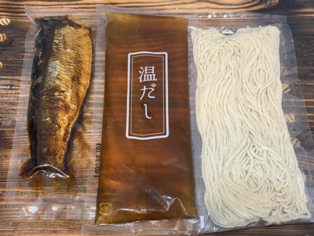 セット内容は、蕎麦、出汁、そして存在感のある「にしん姿煮」。