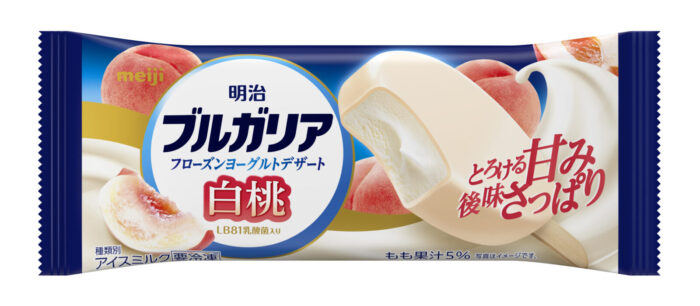アイス部門の1位は、明治「明治 ブルガリアフローズンヨーグルトデザート 白桃」(3月30日発売予定)でした。なめらかでコクのあるヨーグルトベースアイスを上品な甘さの白桃果汁で包み込んでいます。「罪悪感が少なくて嬉しい」(20代女性コメントより)だとうです。