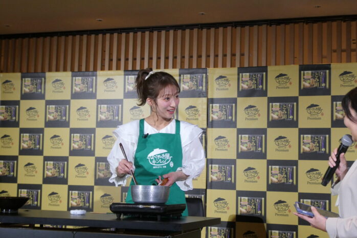 キンレイ・お水がいらないプレミアム、3品目は「中華蕎麦とみ田 濃厚豚骨魚介らぁめん」、辻希美さんが実演