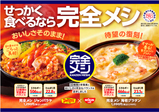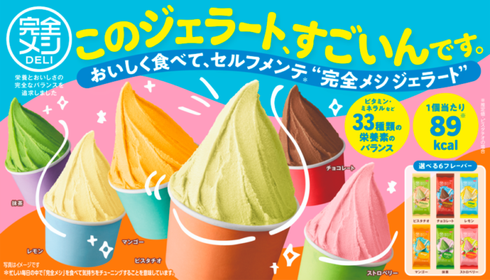 3月24日には、「完全メシ」フルラインアップ戦略発表会を行い、常温でロングライフ(賞味期限90日)のパン『完全メシ BREAD』、EC販売の『冷凍 完全メシ DELI ジェラート』を発売。またデニーズとのコラボメニューも、グランドメニューとして展開します。