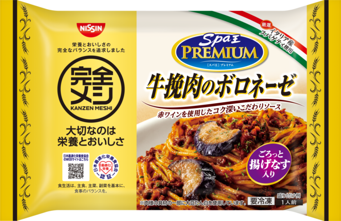 日清食品冷凍の人気パスタメニュー、「冷凍 日清スパ王プレミアム 牛挽肉のボロネーゼ」と、「冷凍 完全メシ 日清スパ王プレミアム 牛挽肉のボロネーゼ」。見た目、どっちがどっちか分かりません。