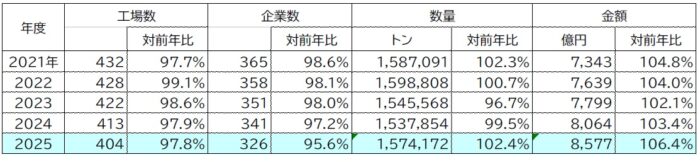 統計では今回初めて、注目を集めている「ワンプレート」について集計し、参考数値として、生産量2万トン、生産額が135億円と発表しました。