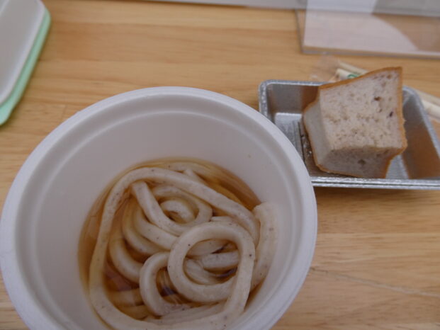 PRイベントでは、1玉の6分の1量を冷やしぶっかけで提供しました。また、もう1品、人気アイテムのひとつ、「BEYOND FREE 玄米ブレッド」も試食提供。普通においしくてヘルシー、というブランドの特長をPRしました。
